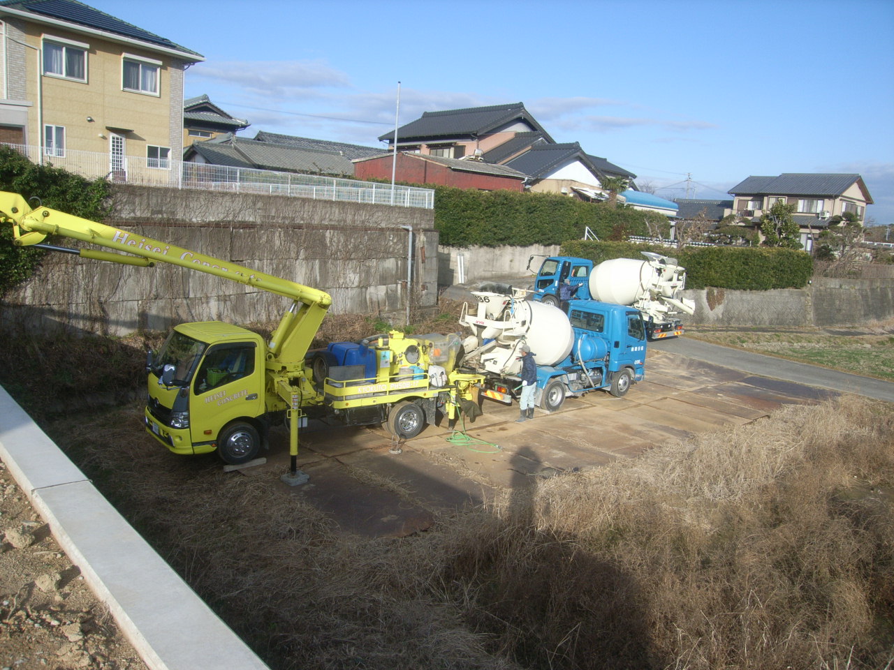 (6)ベース部分のコンクリートを打設します